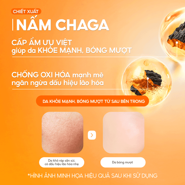 Chiết xuất nấm Chaga: Chứa hàm lượng lớn Beta Glucan, giúp cải thiện các vấn đề da.