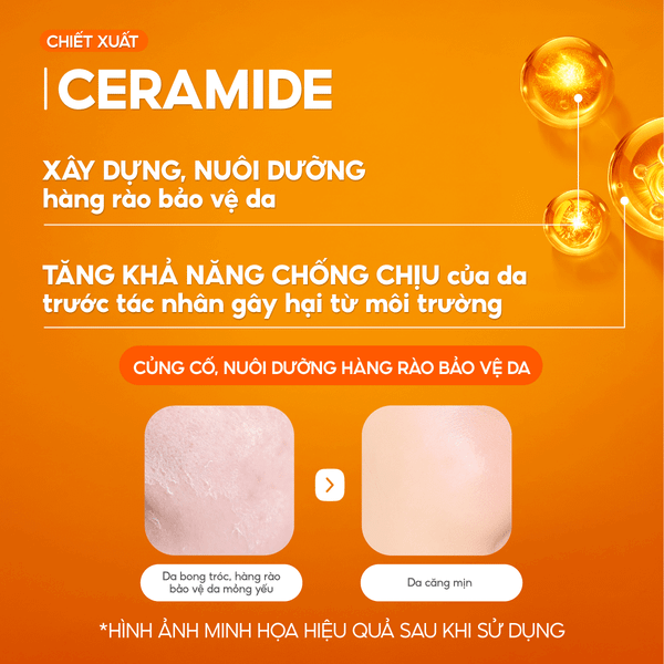 Ceramide: Cải thiện nếp nhăn xuất hiện do tình trạng khô da và tình trạng mẫn cảm trên da.