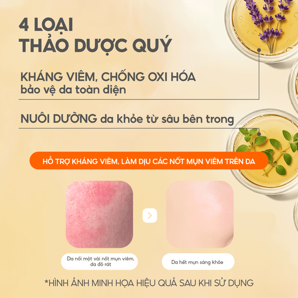 Hỗ trợ giảm tình trạng viêm đỏ, kích ứng do mụn và các tác nhân bên ngoài môi trường.